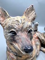clay sculpture of Coyote , Pigeon and rat
