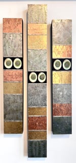Mixed Metals embossed with foraged botanicals, enameled copper
