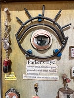 Meteorite, teeth, hearing aid, tarantula hide, prayer coin, hand carved wood components , metal, paper, and a whole LOT of Vision!