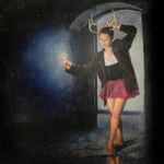 Despite the perilous setting, the protagonist holds out hope, this painting is one of many of my paintings which show the influence and tone of Russian filmmaker, Andrei Tarkovsky.