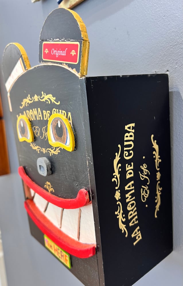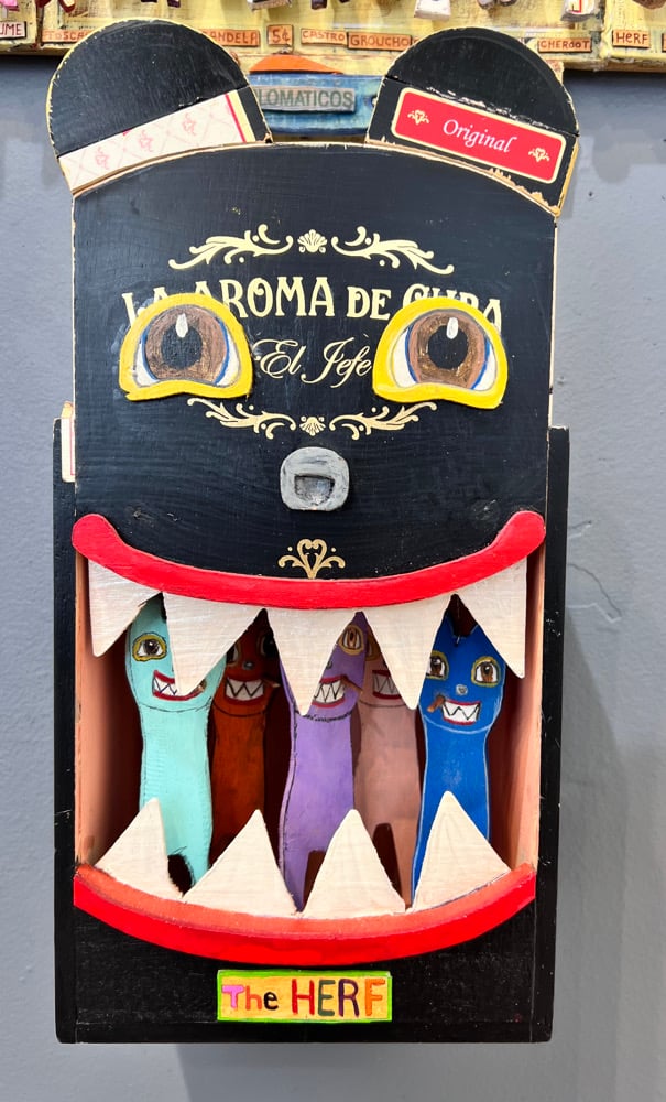 Inside are little dangling cut and shapes fish made from cigar boxes